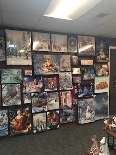 We have a large selection of Christmas and winter themed canvas wall hangings. All are accented with LED lights and most are on timers. We have a large variety of sizes to fit any space you need to decorate and these make wonderful gifts.
